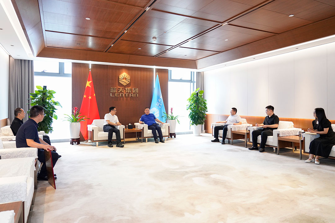 7月14日下午,驻马店高中党委副书记、副校长李继承,副校长袁涛等一行来到蓝天集团,送来喜报和感谢信。